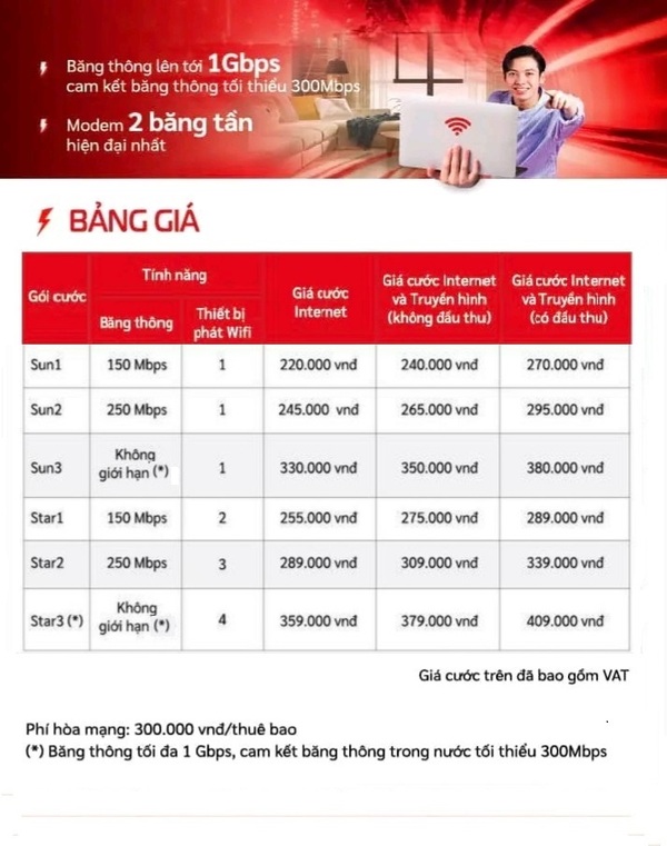 Đăng ký liên hệ Zalo chúng tôi : 09.6789.1488 - Nhận tư vấn miễn phí soạn tin nhắn : DK VIETTEL gửi 09.6789.1488 2. Gói Mạng Internet Cáp Quang VIETTEL Ngoại Thành : - Giá cước : 180.000 đ/tháng - Bao gồm : 150Mbps Internet cáp quang tốc độ cao