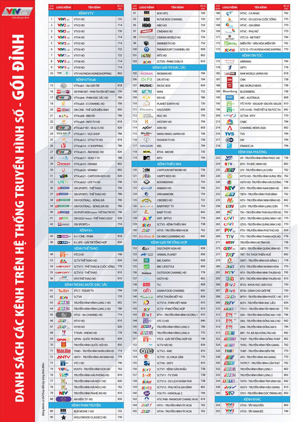 2. List kênh gói Cơ Bản của Truyền hình Việt Nam :